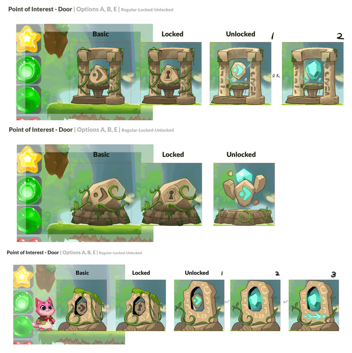 Iterative process for the level finish point. Art direction by Tom Ebner and Jackie Jin